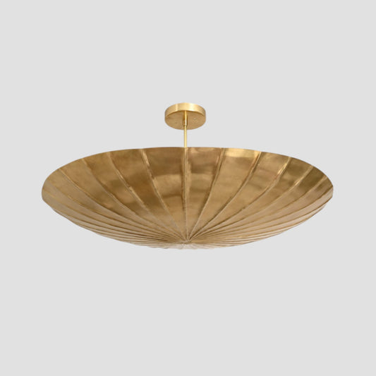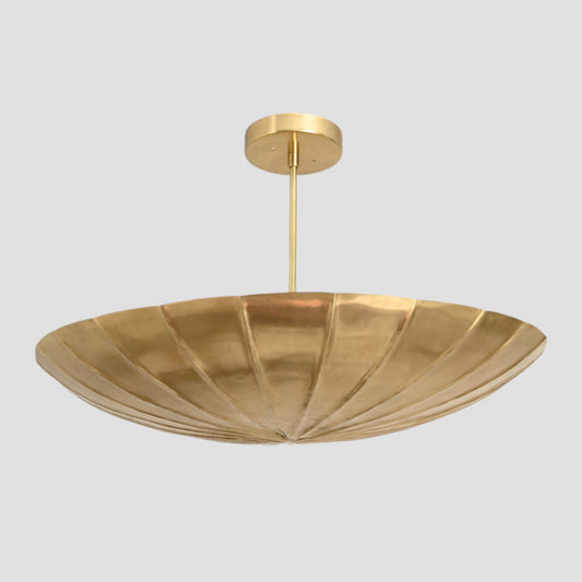3-Light Raw Brass Pendant with Curved Shades – Adds vintage charm