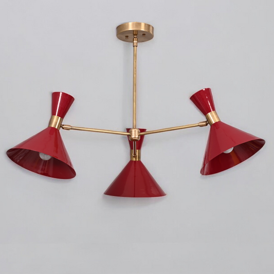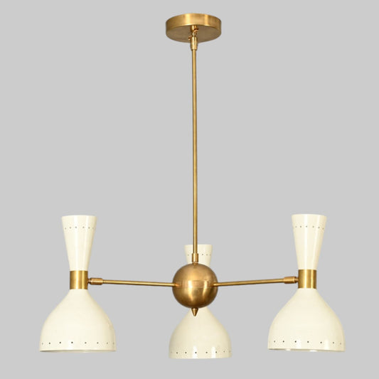3-Arm Brass Pendant Chandelier in Mid-Century Style