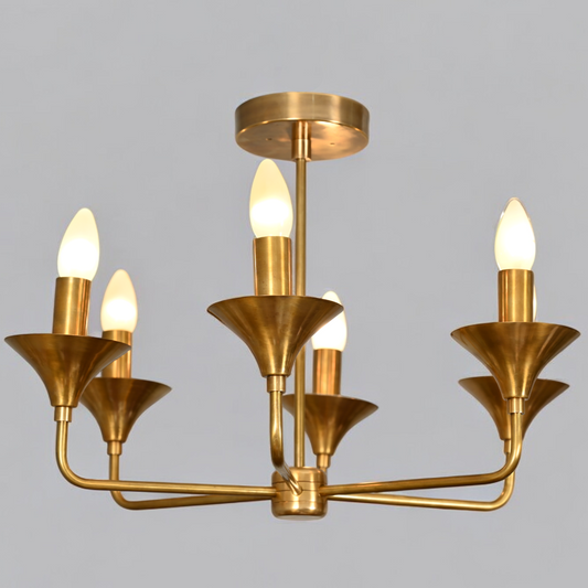 6-Light Brass Ceiling Chandelier – Mid-century charm, timeless touch
