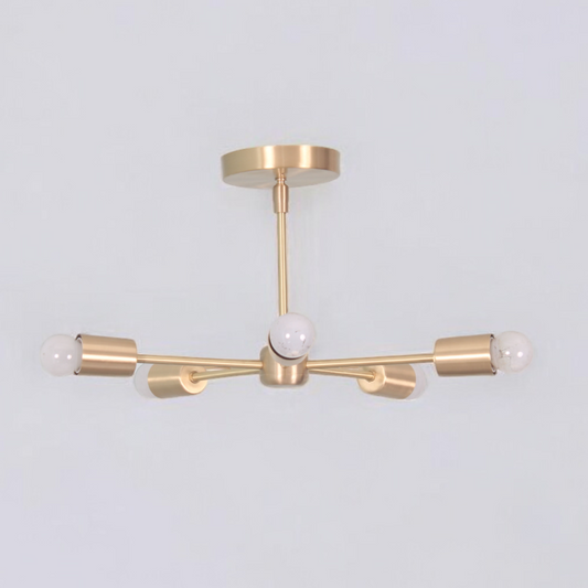 Modern 6-Light Flush Mount Pendant in sleek raw brass