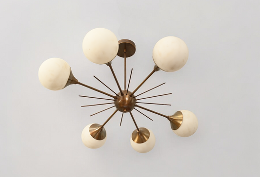 6-armed brass Sputnik chandelier with mid-century elegant design